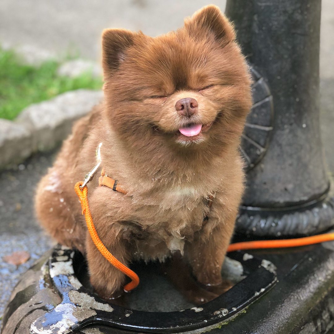 New York artist Kathy Grayson was browsing PetFinder when she saw Bertram The Pomeranian. The pup was dumped by his breeders when he was 5 months old because he was “too big to sell.”