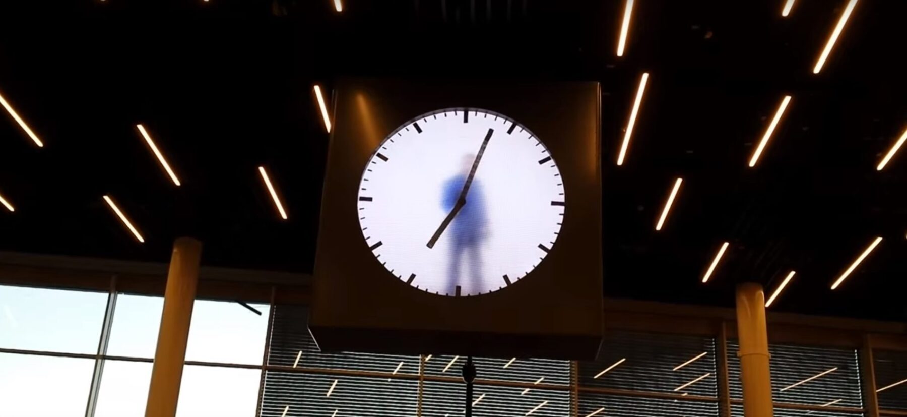 This is, in fact, a 12-hour video sequence that repeats twice during 24 hours, day after day. It’s designed by Maarten Baas after the airport ordered a new installation from the artist for renovation purposes. See how it works below.