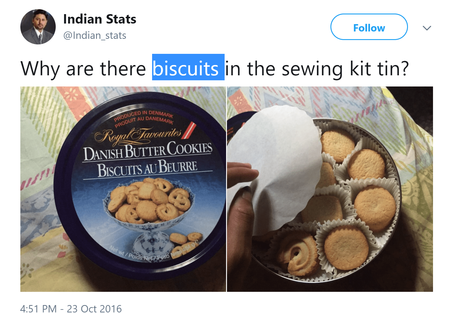 Why are there biscuits in the sewing kit tin? pic.twitter.com/Mx7RozoMbF