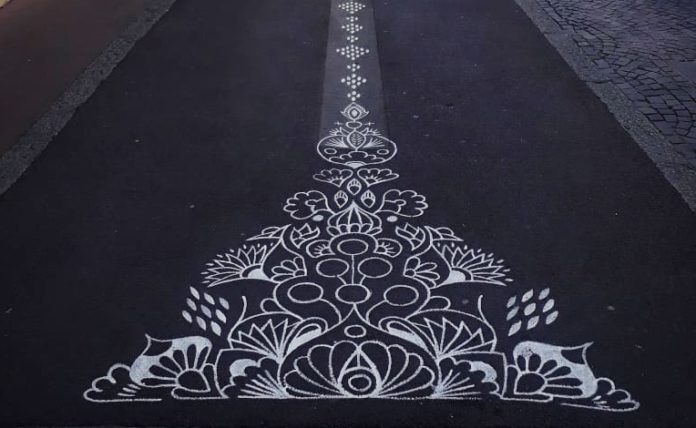 Artist Arthur-Louis Ignoré makes the world prettier by painting white patterned carpets on streets around the globe. His most recent works are in France and Finland, but you can spot them in other cities such as NYC and Montreal.