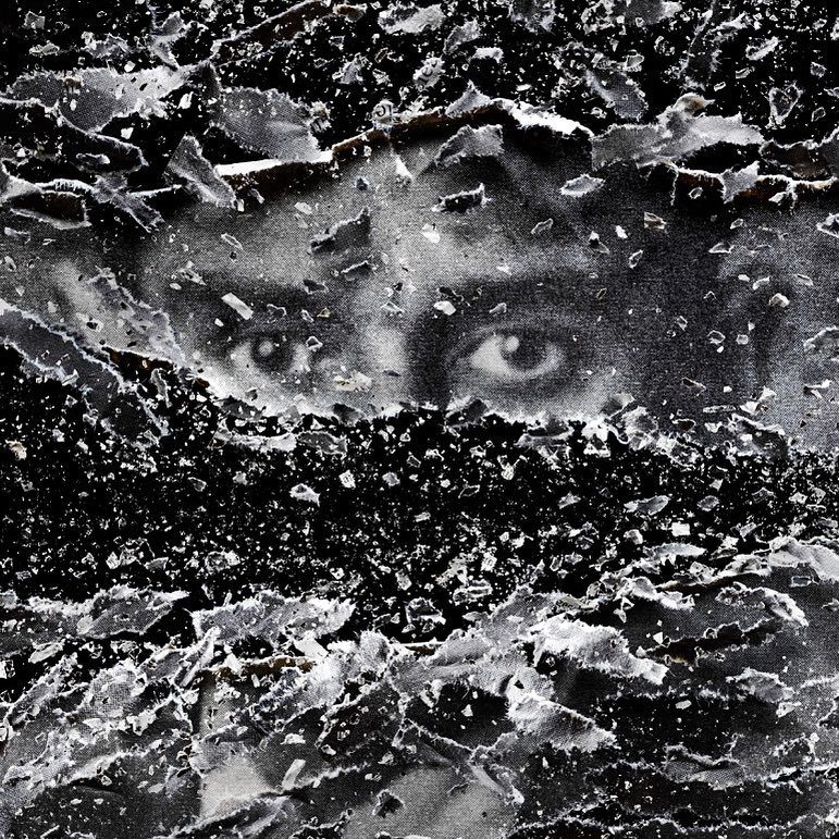 He has created the damage on each photo from the pieces of that same photo, carefully cutting and rearranging them into thought-provoking collages.
