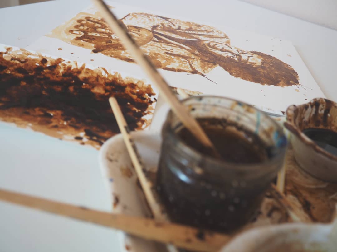 To create shades, she uses different types of coffee. Most of her portraits represent famous musicians, and she loves the fact that her studio smells like coffee all the time.