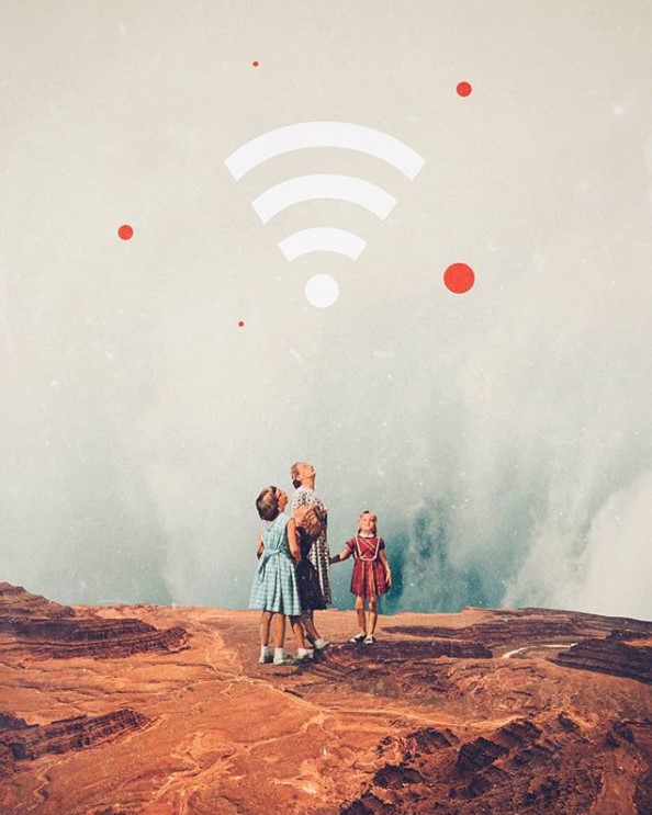 Frank Moth, a pseudonym for two digital artists, began in 2014 in Athens. They create collages that are old school and futuristic at the same time. Their nostalgic postcards have been featured in many publications worldwide, such as Huffington Post US, Buzzfeed and MTV Greece.