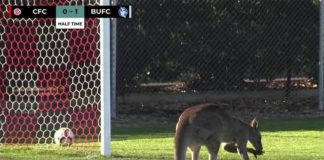 Kangaroo stops football match for over half an hour