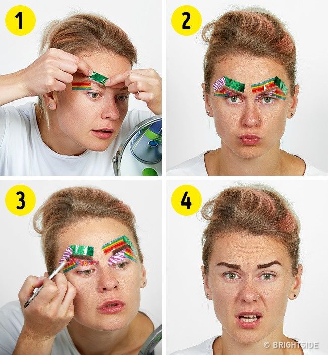 In order to create a straight browline, use adhesive tape.