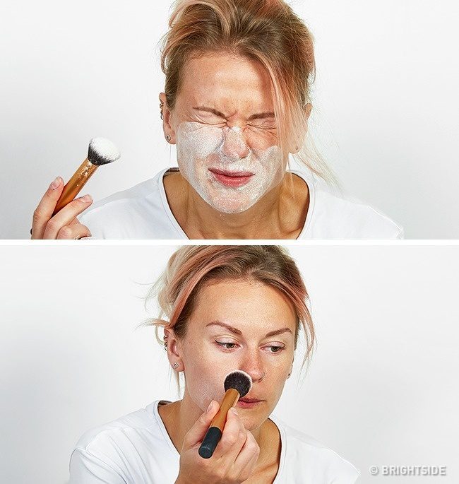Though they look the same, don’t think you can use flour instead of the loose powder. You’ll just get the flour all over your face and clothes but miss the actual effect.