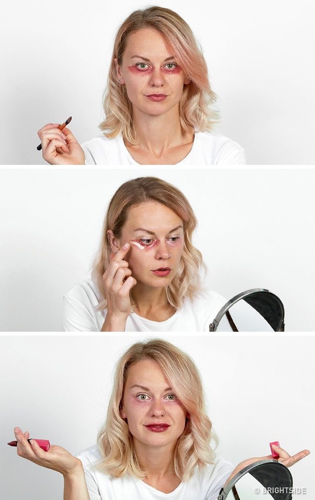 Lipstick helps to conceal dark circles under the eyes.