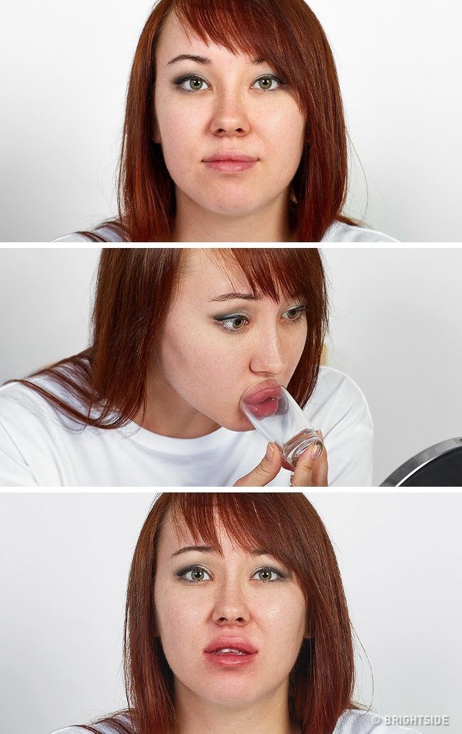 Girls always want fuller lips, but a shot glass is not the best way to do it. Best case scenario, you end up with red and swollen lips. Worst case, you get bruises makeup can’t cover.