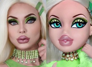Cartoon characters, especially females, have signature large eyes and almost perfect facial features. A talented makeup artist created two cartoon doll faces, and it's absolutely amazing.