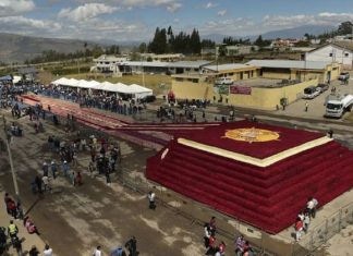 Ecuador recently got into a quest to set the world record for the largest flower arrangement. Half a million roses were used for the building of a big pyramid of roses.