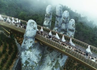 There’s a new bridge outside Ba Na Hills, near Da Nang in central Vietnam that visitors are talking about.