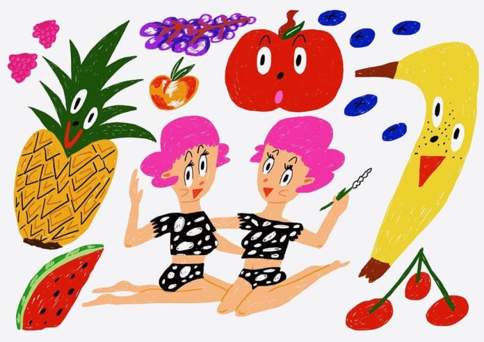 Arabella Simpson creates colorful illustrations and fits them together in a Tetris-like manner. The artist is fascinated by “recycling, originality, and copyright” and wants “an image to communicate its meaning instantly.”