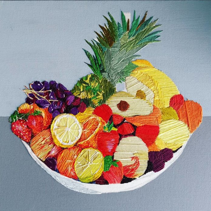 “I portray food using embroidery thread to give a sense of surprise to the viewer, something often mass produced and dismissible a sense of fun and nostalgia, re-crafted and reimagined,” explained Avery in an interview published on Sarah K. Benning’s website.