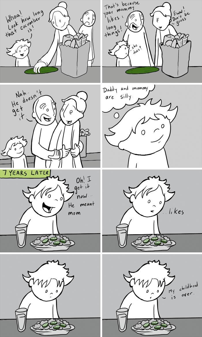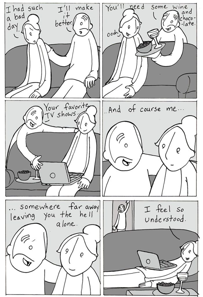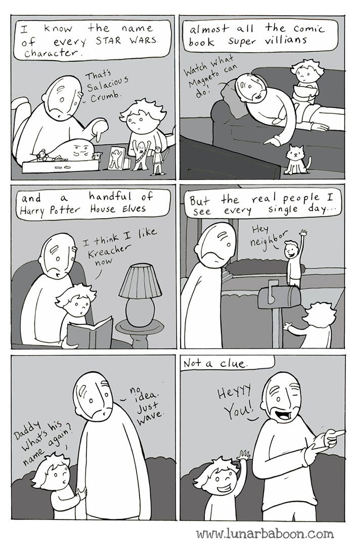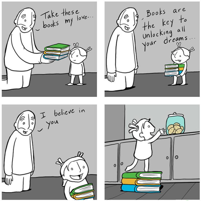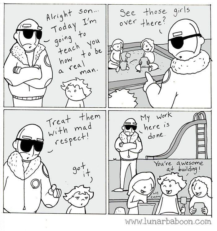 Chris focuses on small adventures he and his family have and illustrates daily situations with a great sense of humor. As he said to HuffPost, “Lunarbaboon was created as a way for me to combat my anxiety and depression. There is a lot of bad things happening in the world, but there is also a lot of good. I am very lucky to be married to a very smart, strong, opinionated person who is constantly fighting against injustice. A lot of what she and I talk about on a daily basis makes it into the comics.”