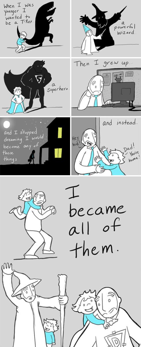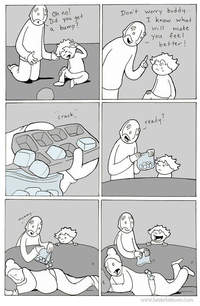 It’s not only kids who are learning as they grow up. The journey is fun and fulfilling for parents, too, and illustrator Chris Grady shows exactly that with his comic called Lunarbaboon.