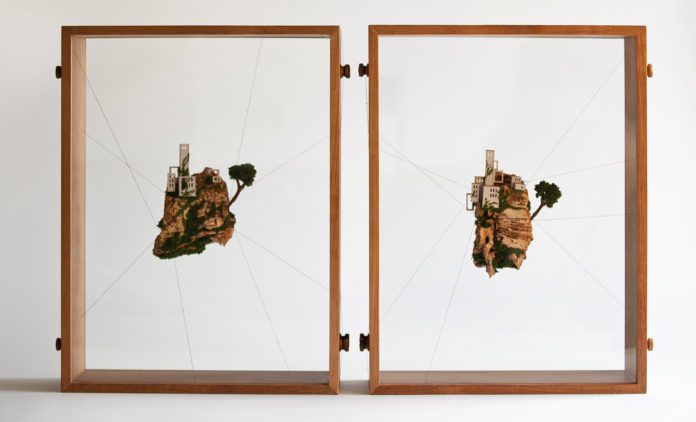 These micro houses are tied to a wooden frame with wires, and look like they float in mid-air which only enhances the dramatic effect. Check out some of them below and get ready to be impressed.
