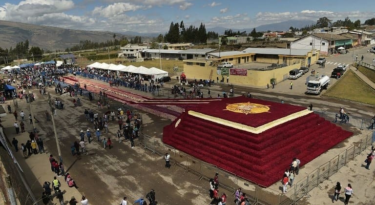 Ecuador recently got into a quest to set the world record for the largest flower arrangement. Half a million roses were used for the building of a big pyramid of roses.