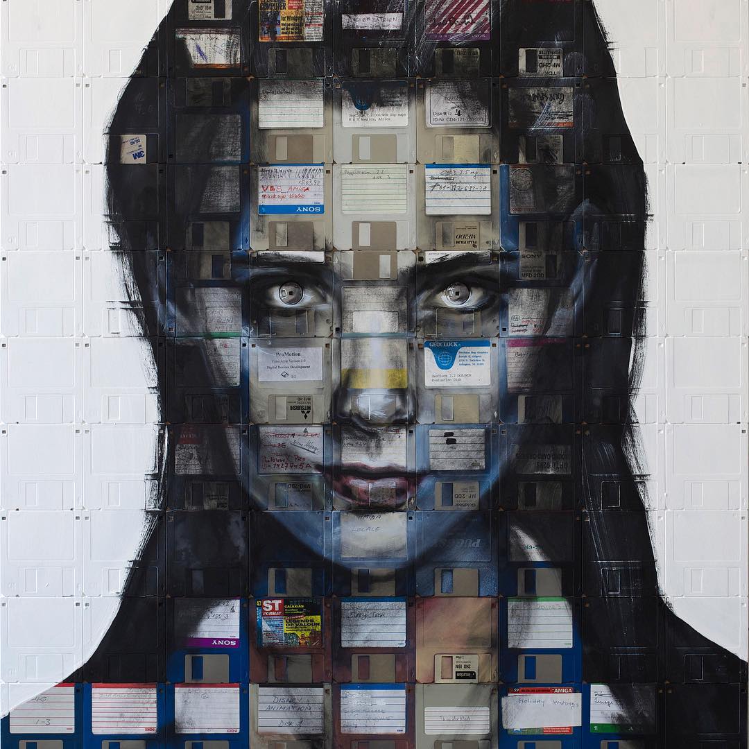 Gentry glues floppy disks together using a special technique, which gives him a big surface to paint on while also contributing something unique to his works. Maybe its nostalgia, but we think his floppy disks art pieces look great. Check some of them below.