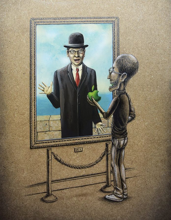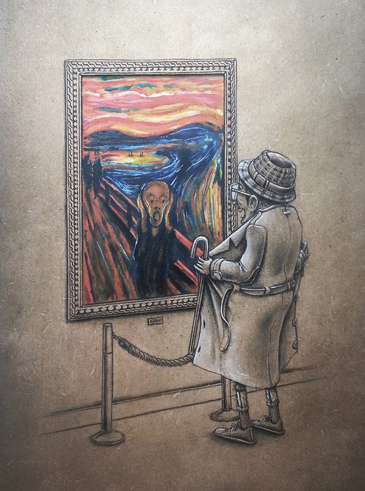 If you ever wanted to know how Steve Jobs got the Apple logo or what scared the figure in the painting of Edvard Munch Scream, now you can. Through his series “Muses et Hommes” French artist Pez tried to give his own take on some of the most iconic and well-known paintings in the history of art.