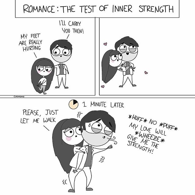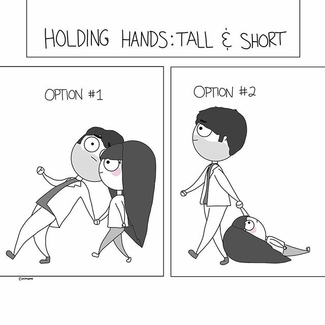 We all have things in life that we love almost the same. For Mackenzie that are her boyfriend and food. In order to show how much she loves these two things, she started of webcomics titled Cinimomo Comics. Since her works are pretty hilarious and relatable, people fell in love with them and just can’t get enough. Mackenzie even published a book The Pros and Cons of Being A Tall/Short Couple: A Cinimomo Comics Tale, in which she illustrates struggles of being a short person in a relationship with a taller one.