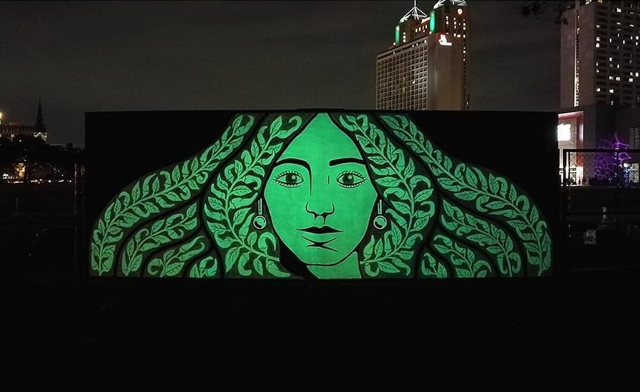 What seems just an ordinary mural at day, becomes a whole other thing at night.