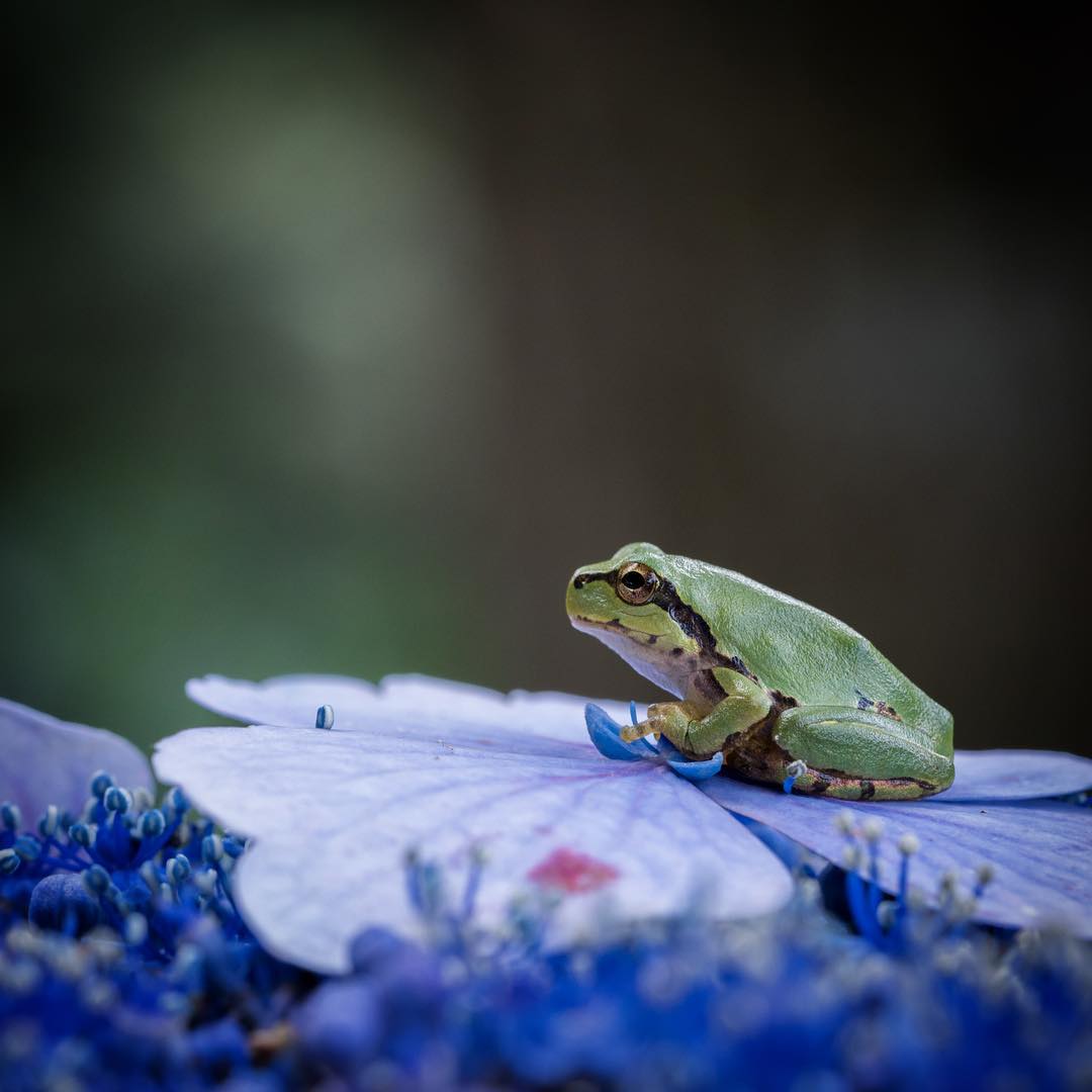 Hydrangeas are gorgeous flowers that grow in abundance in southern and eastern Asia. They are blooming during the rainy season and are often visited by tree frogs waiting for the bugs they can eat.