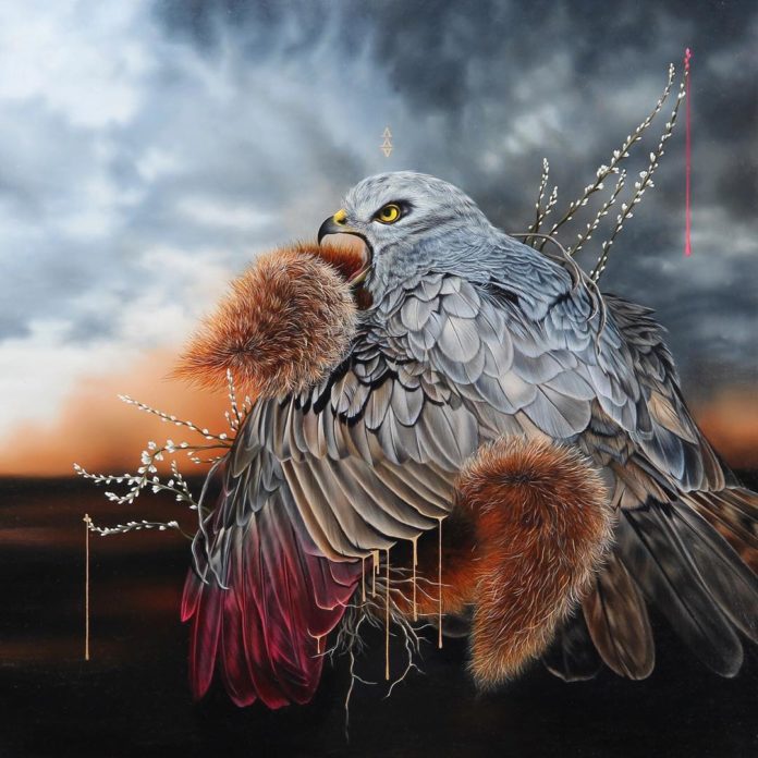 “I don’t mean for them to be read too literally, but rather hope they lend a certain feeling of portentousness to the pieces. I like referencing religious icon paintings and other forms of ‘serious’ historic painting, but using animals and birds in the place of saints, etc. I’m going for the feeling of narrative realism, but working with a narrative that’s mysterious, missing some information, open to the viewer’s interpretation.”