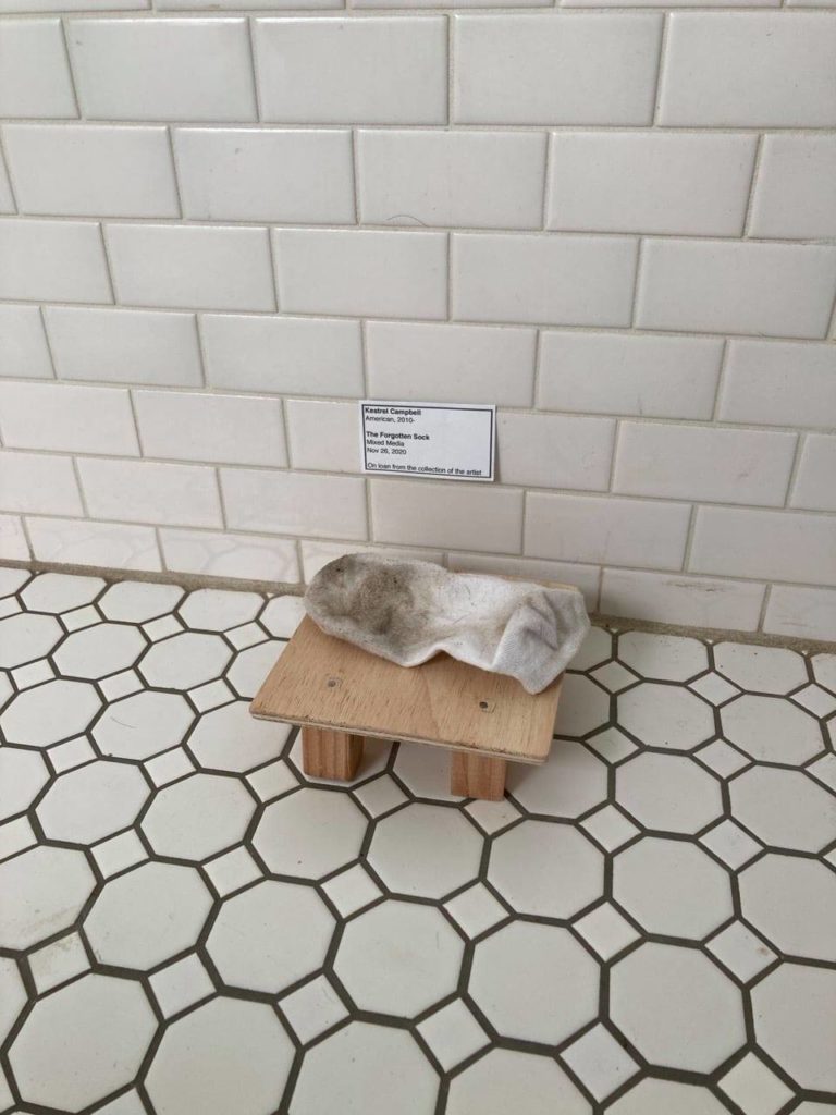 After one week, the sock was still there. That’s when Cambell decided to have some fun. She made a miniature label making the sock a piece of artwork done by her daughter herself. But she didn’t expect such a creative “answer” from her kid. And that’s how their little game started.