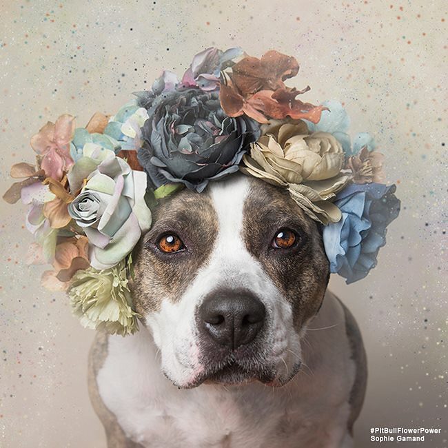 “Flower Power”, a project by photographer Sophie Gamand, “challenges the way society perceives and treats pit bulls by shortening the emotional distance between the viewer and these misunderstood dogs. The portraits celebrate the life and dignity of these soulful creatures who are at the mercy of humans,” the artist shares on her website.