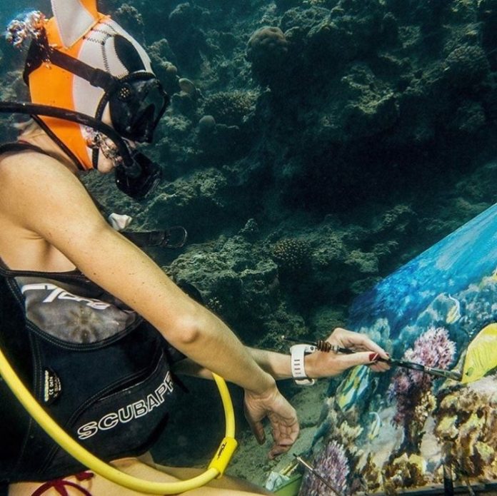 She even managed to develop a special technique that allows her to paint underwater while she is swimming, but as she mentioned, her materials are all eco-friendly. The artist also offers diving classes where you can paint underwater with her. What a brilliant idea, right?
