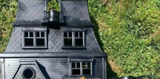Mother Transforms Pink Dollhouse Into a Black, Spooky One