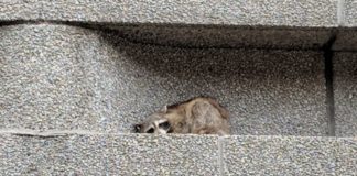 Raccoon Gets Everyone’s Attention As He Climbs The 25-Story Building in...