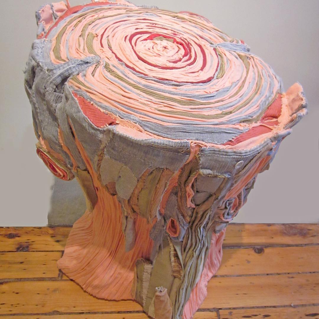 Tamara Kostianovsky is a textile artist who uses recycled clothes and other fabric to create nature elements. Her latest project is a series of tree stumps made from her late father’s clothes. Her idea was to integrate his belongings into colorful logs and represent the passing of time and becoming one with nature after one’s death.