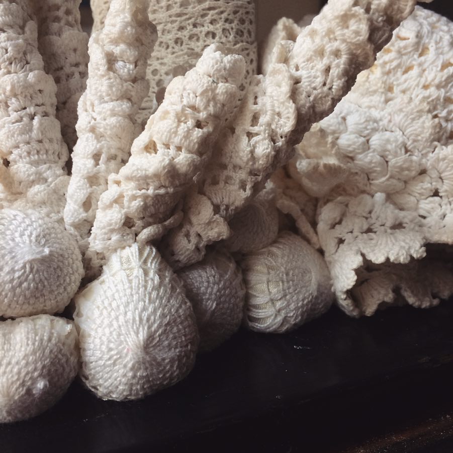 In her series, called “Poumons des océans”–which translates to “Lungs of the Oceans,” she features the beauty and fragility of corals. She used textiles, beads, and sequins to emulate the unique forms and vibrant colors of living corals. Bourgine’s sculptures are encased in glass bell jars, protected from harm caused by the hands of humans.
