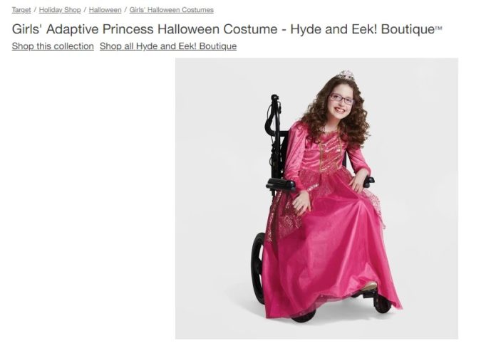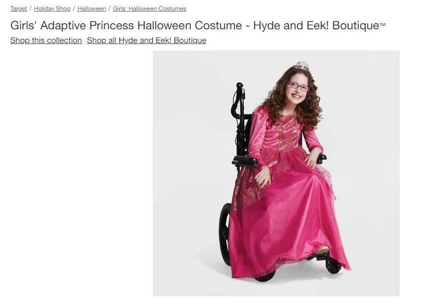 Designed by Hyde & Eek! Boutique, the costumes are designed for children who are physically-challenged and have been adapted to allow them to incorporate their wheelchairs.