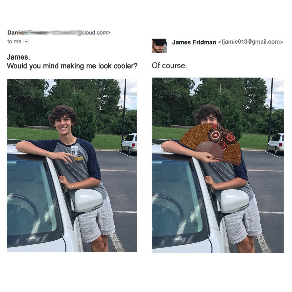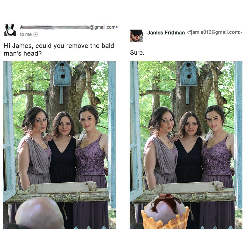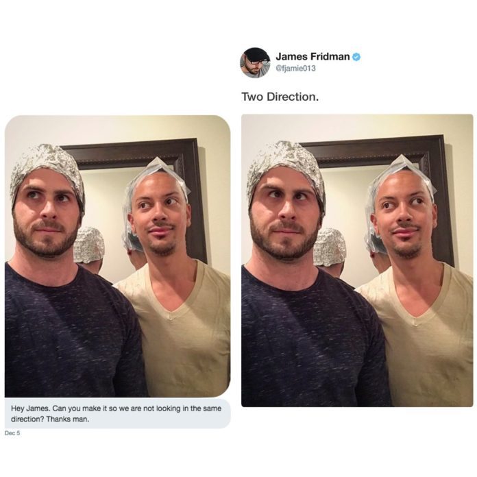 James takes their request seriously and always delivers the perfect result. At least according to him. For people who made the request, the final outcome probably isn’t what they have hoped for. For us, who are witnessing it, it is hilarious. Check out some of his new works below.