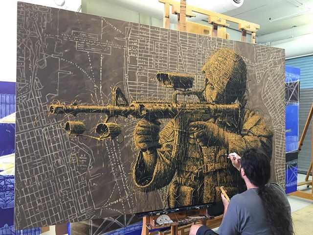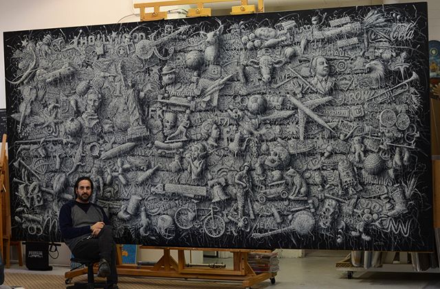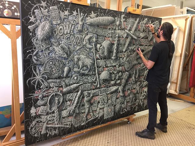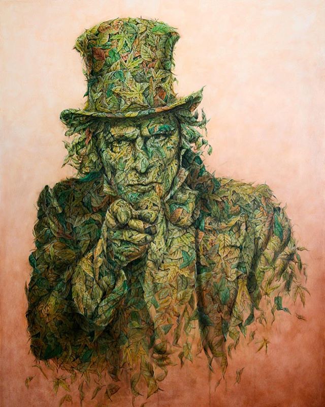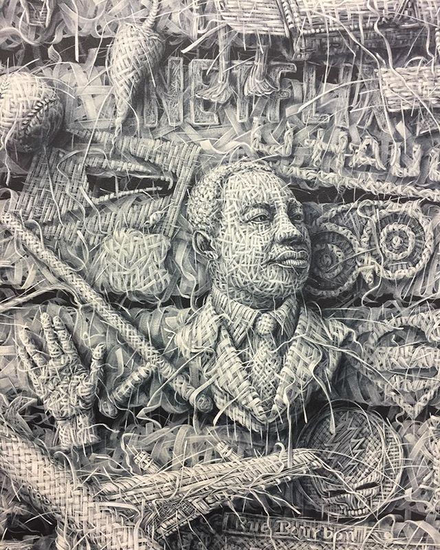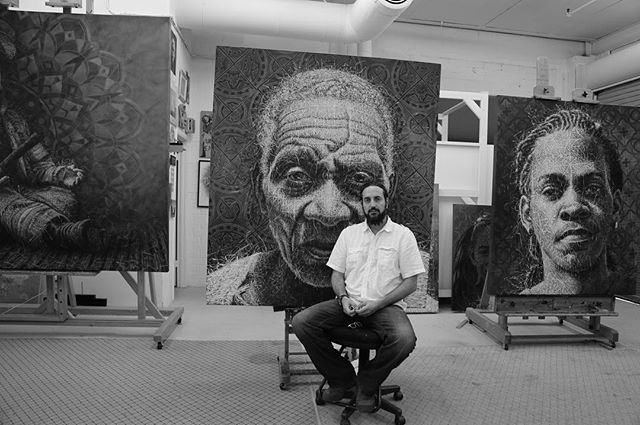 The artist describes his work on his website saying, “My technique involves using a signature basket weaving style to create the paintings. Each one takes about 20 layers to intricately weave the image of the cake in oil with brushes of various sizes and textures. I use this woven effect to further underscore human interconnectedness and the interdependence between man and nature. This method is intended to symbolize not only how much stronger we are when we are connected, but also how vulnerable we become when separated from one another.”