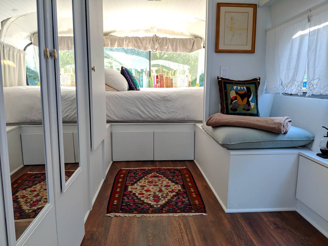 “I began to consume everything I could and read more about sustainable lifestyles. Ultimately, a home on wheels seemed like a perfect solution: I could easily explore new places (finding a permanent place to settle, in the short term, was not a priority for me), and I could continue to live a vegan lifestyle. RVs lacked the aesthetic I was going for, so I landed on a vintage bus conversion which could be registered and insured as an RV,” she continued.